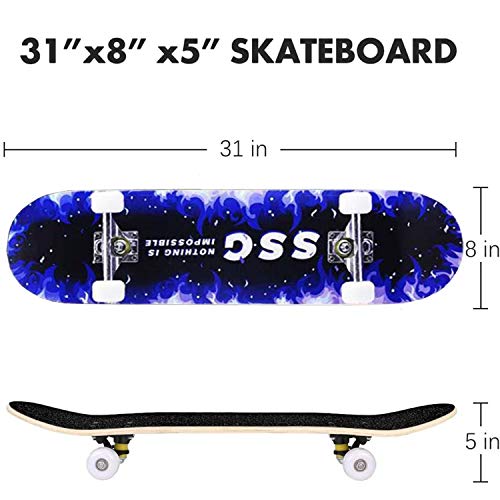 Specification: Aceshion Skateboards Volwassen 31 “X8” Inch Esdoorn Hout Tieners Dubbele Tricks Pro Compleet Skate Board voor Beginner Meisjes Jongens (blauw)