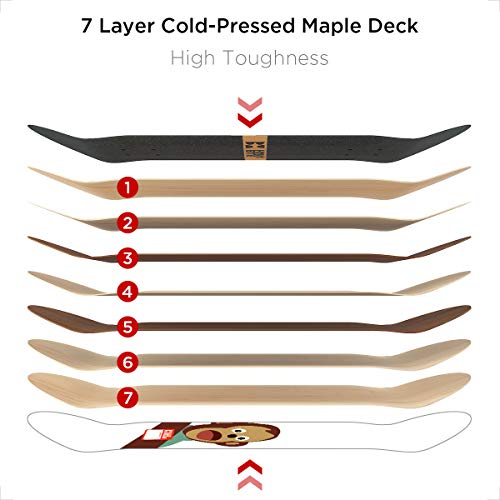 【Stabiel】 Het skateboard is gemaakt van 7-laags esdoornhout met hoge dichtheid door koudpersen, het board is 10 mm dik, het is veel stabieler dan boards die uit 9 lagen goedkoop hout zijn gebouwd.