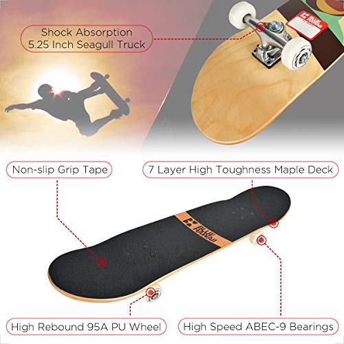 Specification: BLUE HAWAII Skateboard 78,7 x 20,3 cm compleet Cruiser skateboard, 7-laags esdoornhout dek met ABEC-9 kogellagers, voor…