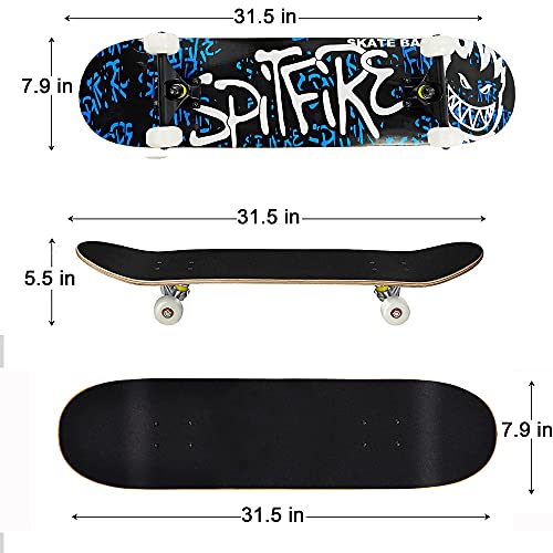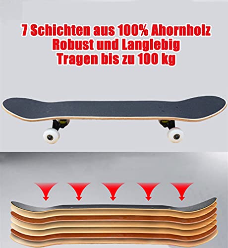 🛹 [Skateboard Voor de Meeste Mensen]: ons skateboard is volledig gemonteerd en direct klaar voor gebruik. Afmetingen: 80x 20cm (31,5x 7,9 inch). Maximale belasting: 150 kg. Geschikt voor kinderen, tieners, volwassen beginners en professionele skateboarders. Geweldige besturing en perfect om mee te beginnen.