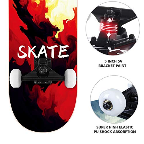 💪 Hoogwaardige materialen: skateboarddek van 7-laags esdoornhout van klasse A en 5 inch 5 V lakhouder, sterk en duurzaam, om je solide en betrouwbare grip te bieden. Het maximale draagvermogen van het skateboard kan 330 pond bereiken. Biedt meer gewichtsondersteuning en snellere snelheden, waardoor het rijden veiliger wordt.