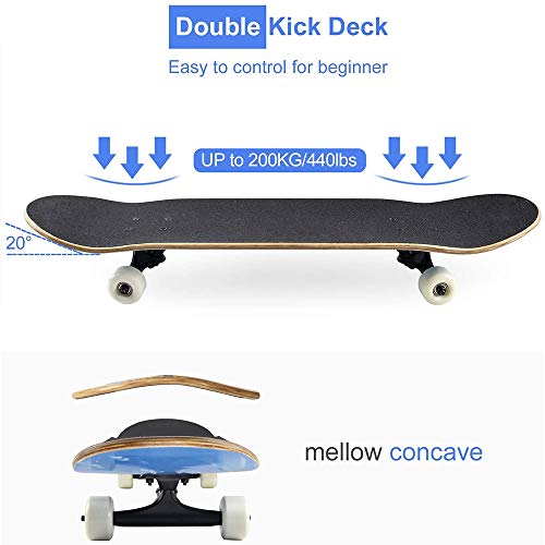 1.【EINFACH ZU GEHEN】: Komplette Skateboards verwenden 8 Lays 31’L x 8’W x 5’H Canadian Maple. Skateboards Max Load 250lbs Fit für Erwachsene und Kinder Anfänger und professionelle Skater. Double Warped Design Skateboards unterstützen erweiterte Skate-Tricks. Das rutschfeste matte Holzdeck bietet dem Benutzer nicht nur mehr Stabilität und Sicherheit, sondern hält auch die Füße darauf.