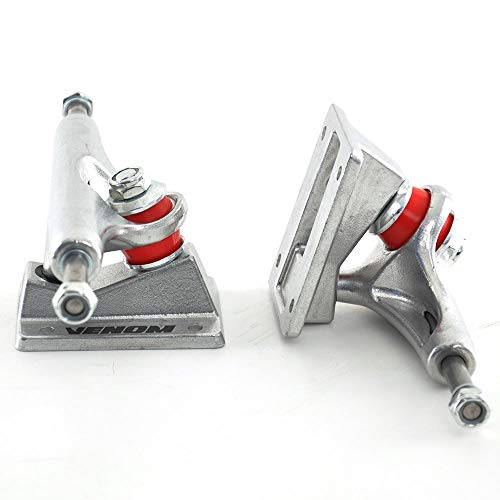 Vrachtwagen: Venom Core Skateboard Trucks. Ultralichte aluminium truck met rauwen, high rebound-bushing en Venom logo’s op de baseplate gedrukt.
