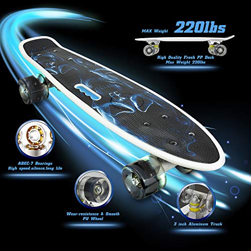 22 inch Skateboard Complete is ontworpen voor elk niveau skaters, mini cruiser met compacte body is voorzien van hoge kwaliteit PP dek en gladde wielen, stevige constructie maakt het gemakkelijk om te leren en zorgt ervoor dat uw kinderen veilig glijden, genieten van veel plezier het brengt. Een geweldige manier om kracht, balans en reflexen te ontwikkelen, PHNHOLUN Skateboards is een perfect cadeau voor jongeren, tiener.